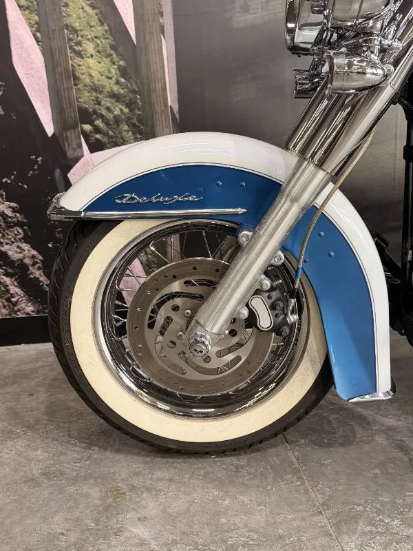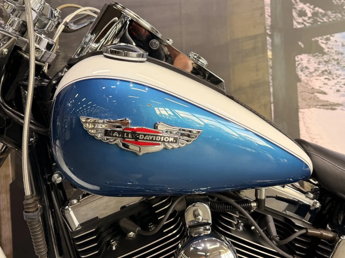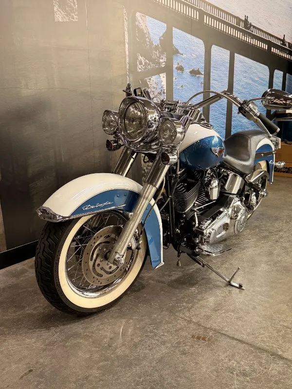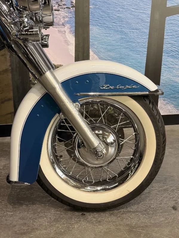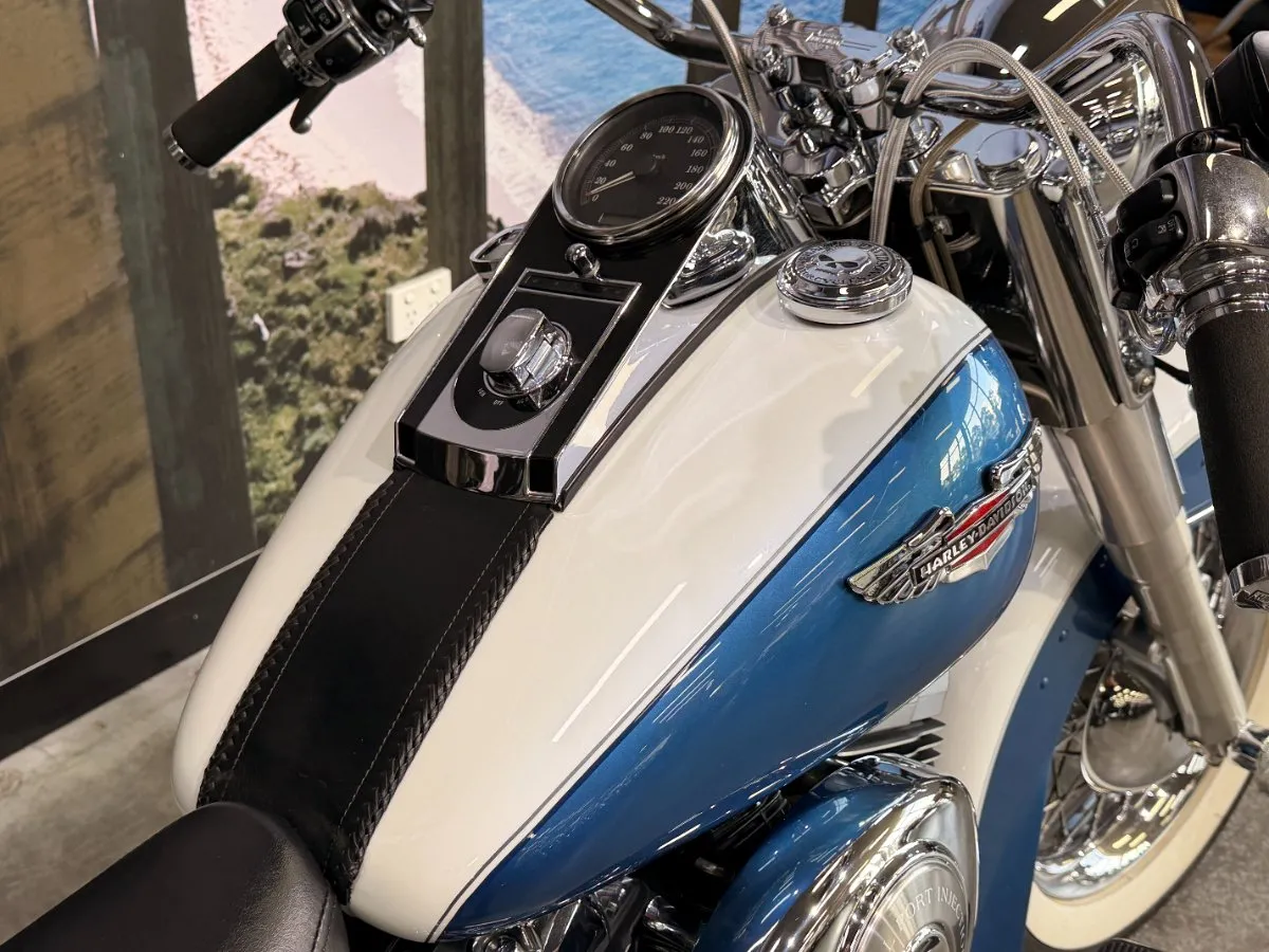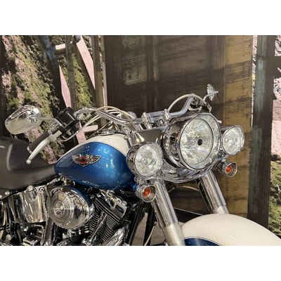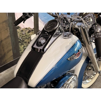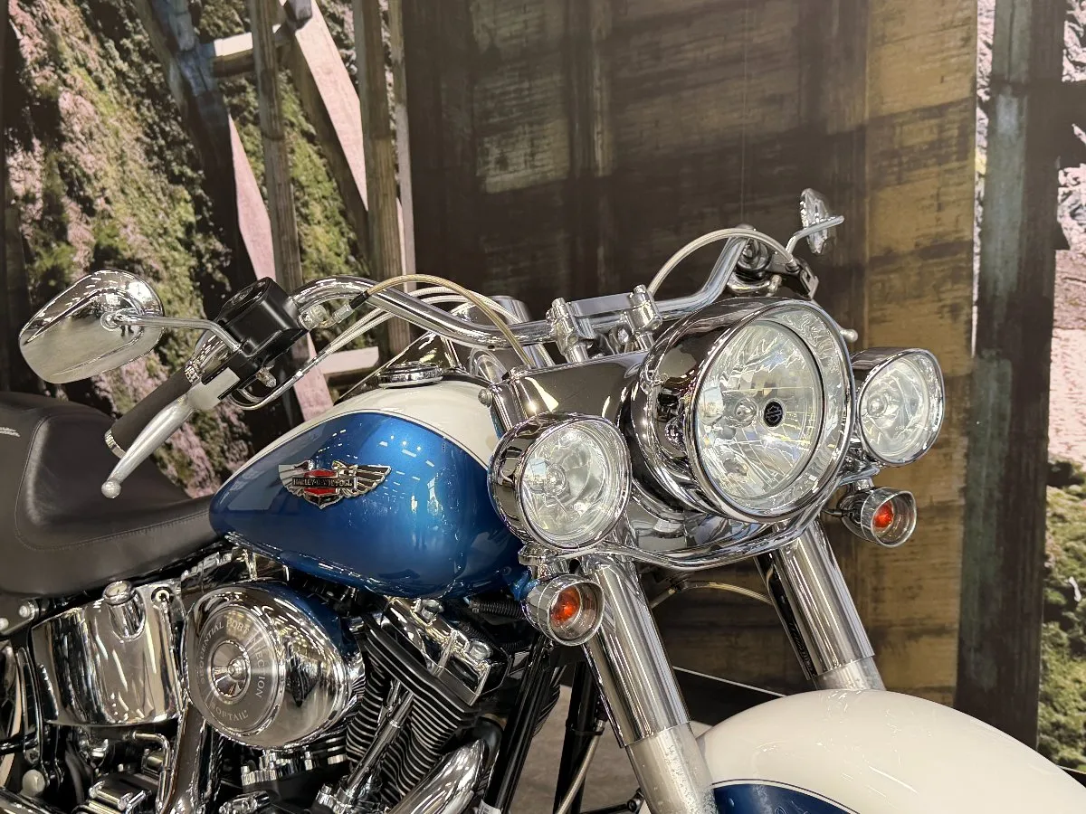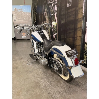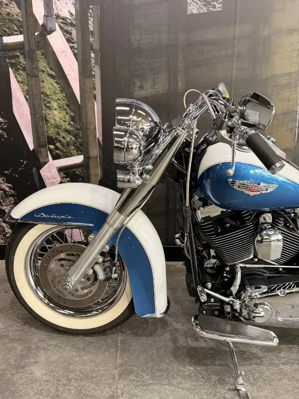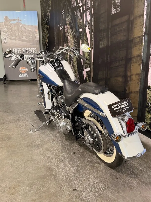 2005 HARLEY-DAVIDSON 1450CC FLSTN SOFTAIL DELUXE FINISHED IN THE BEAUTIFUL FACTORY 2 TONE GLACIER WHITE PEARL & CHOPPER BLUE PEARL PAINT SCHEME!! WHAT AN ABSOLUTE BEAUTY THIS IS!! THE 88 CUBIC ENGINE SOUNDS AWESOME WITH STAGE 2 CAM, VANCE & HINES SHORT SHOT PIPES & A SCREAMIN' EAGLE TUNER!! COMES WITH ALL THE RIGHT JEWELLERY TOO, A SET OF 2010 DELUXE RIMS, HOODED HEADLIGHT LENSES & A TOMBSTONE TAILLIGHT WITH CHROME LAYOWN PLATE FOR THAT CLEAN & CLASSIC LOOK!! A 2005 MODEL WITH ONLY 22,000KMS ON IT THIS IS READY TO BE RIDDEN!! COME IN TODAY & CHECK OUT THIS CLASSIC LOOKING DELUXE BEFORE IT'S GONE.