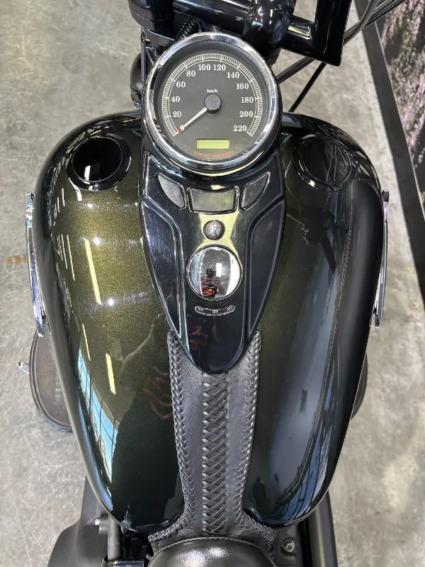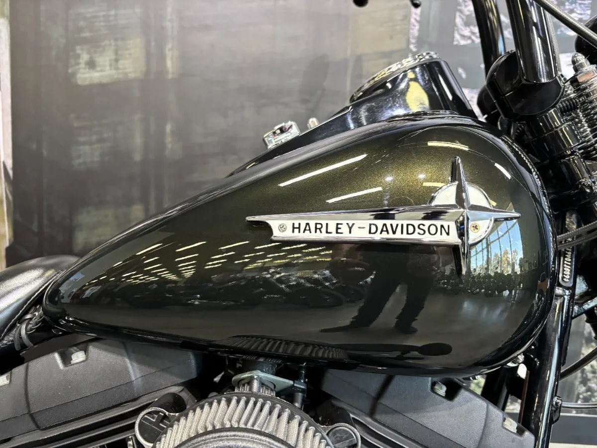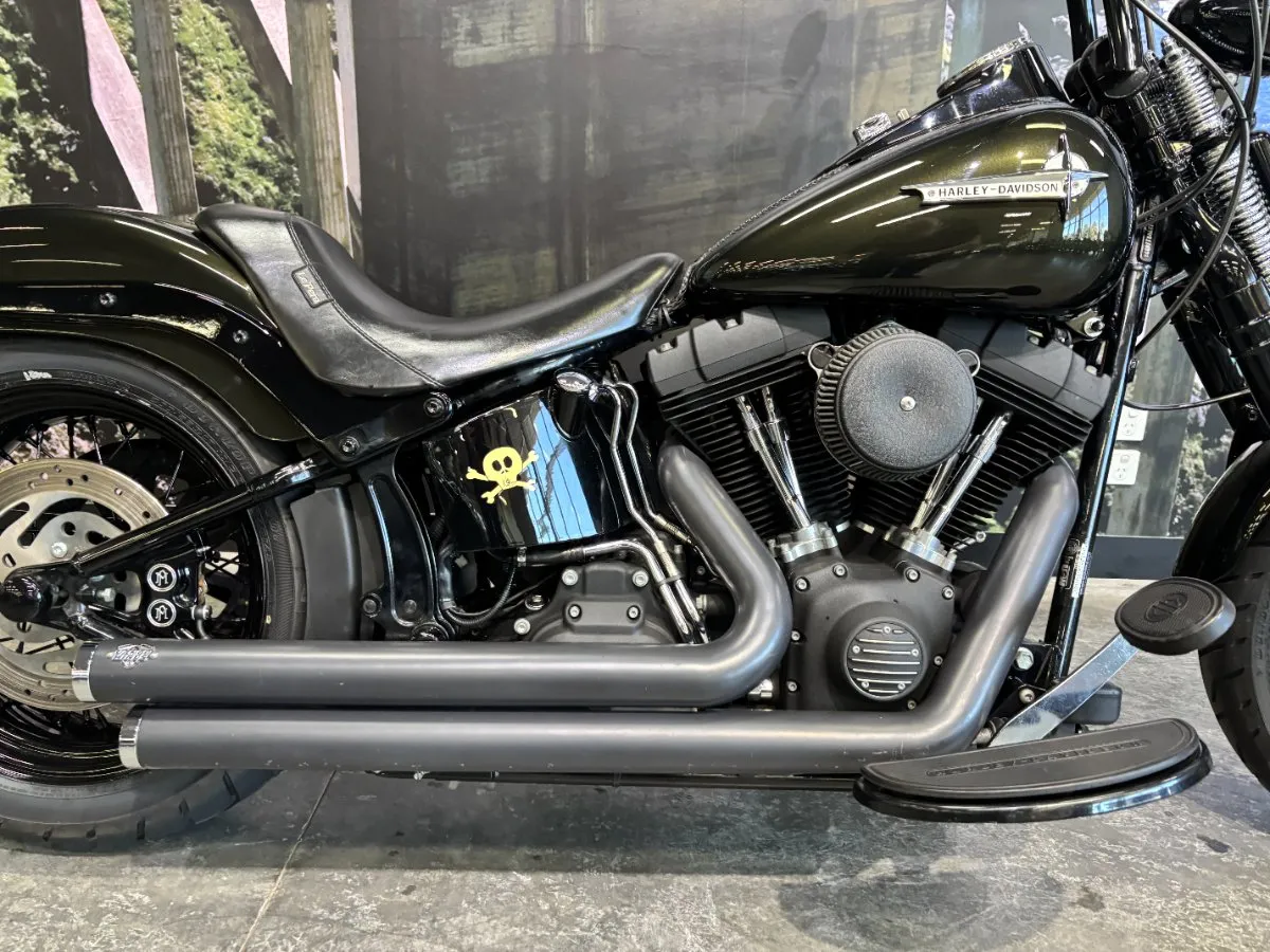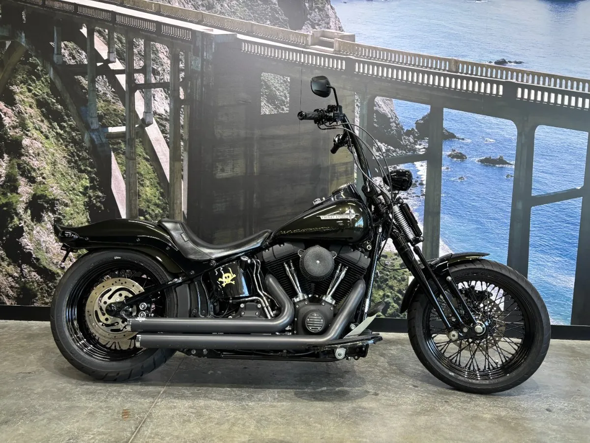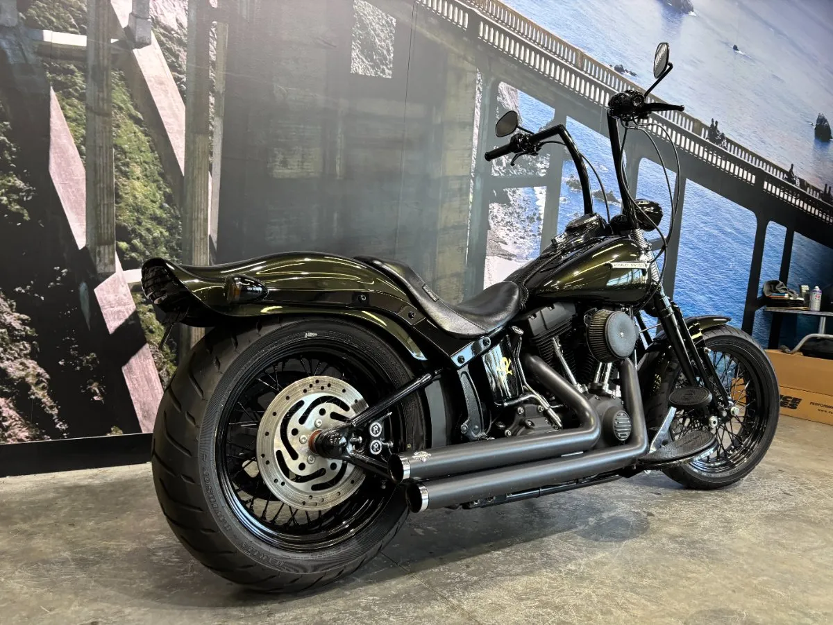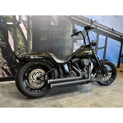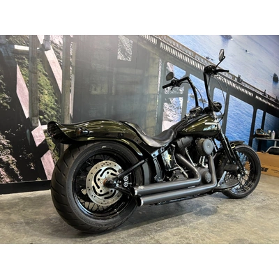 2009 HARLEY-DAVIDSON 1600CC FLSTSB SOFTAIL CROSS BONES FINISHED IN MIDNIGHT GREEN PAINT. A 96 CUBIC INCH ENGINE COMPLIMENTED BY A SET OF BLACK VANCE & HINES BIG SHOTS STAGGERED PIPES, THIS BIKE SOUNDS AWEOSME!! WITH AN OLD SCHOOL LOOK INCLUDING A SPRINGER FORK SET UP, BLACK SPOKED WHEELS & FUEL TANK NAMEPLATE THIS IS THE EPITOME OF COOL!! GET READY TO CRUISE ON THIS WEAPON WITH A SET OF 16 INCH APES HANGERS, WHAT A WICKED RIDE!!