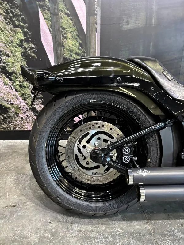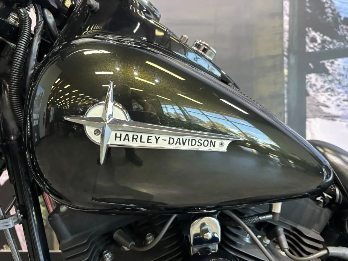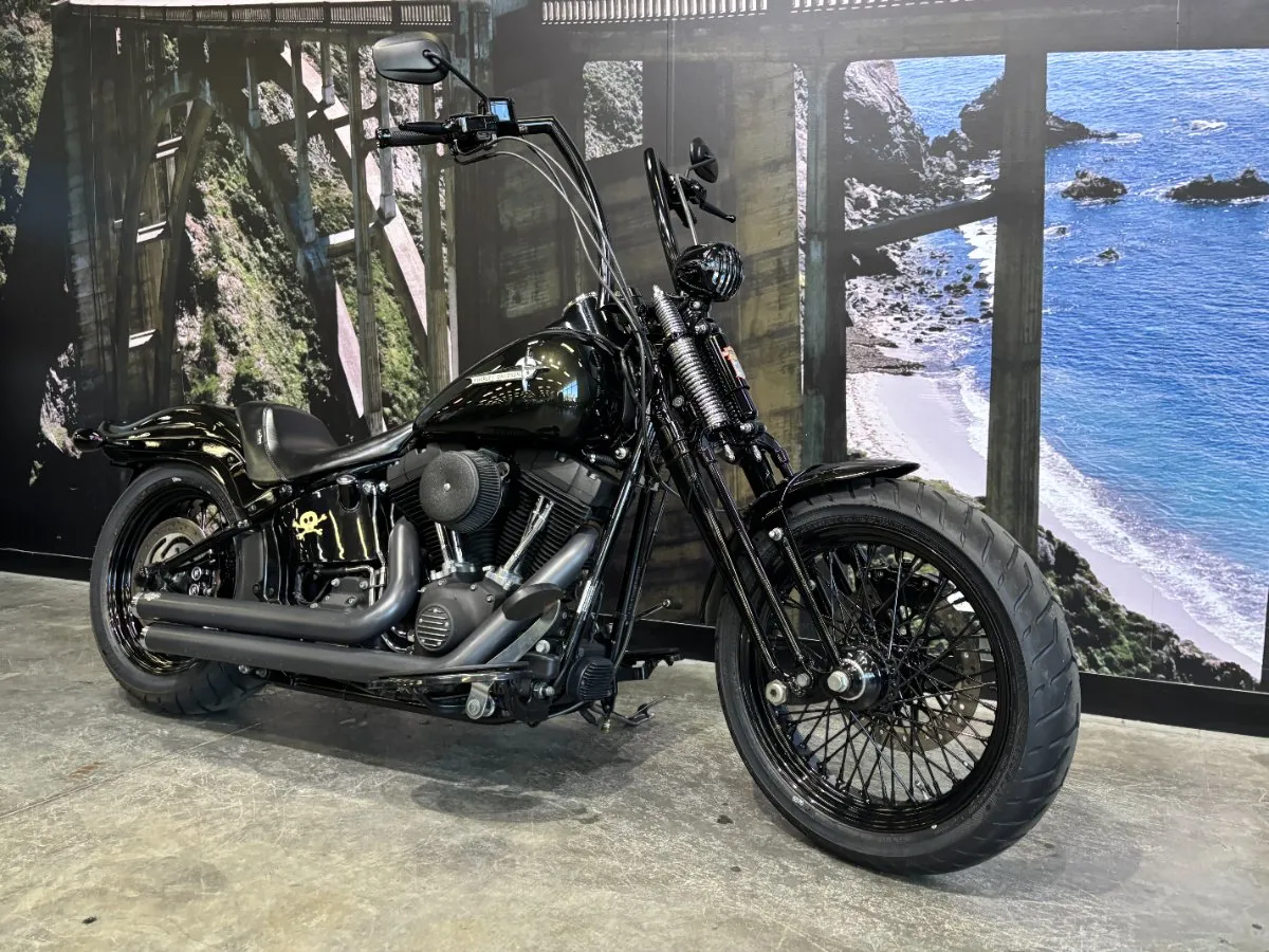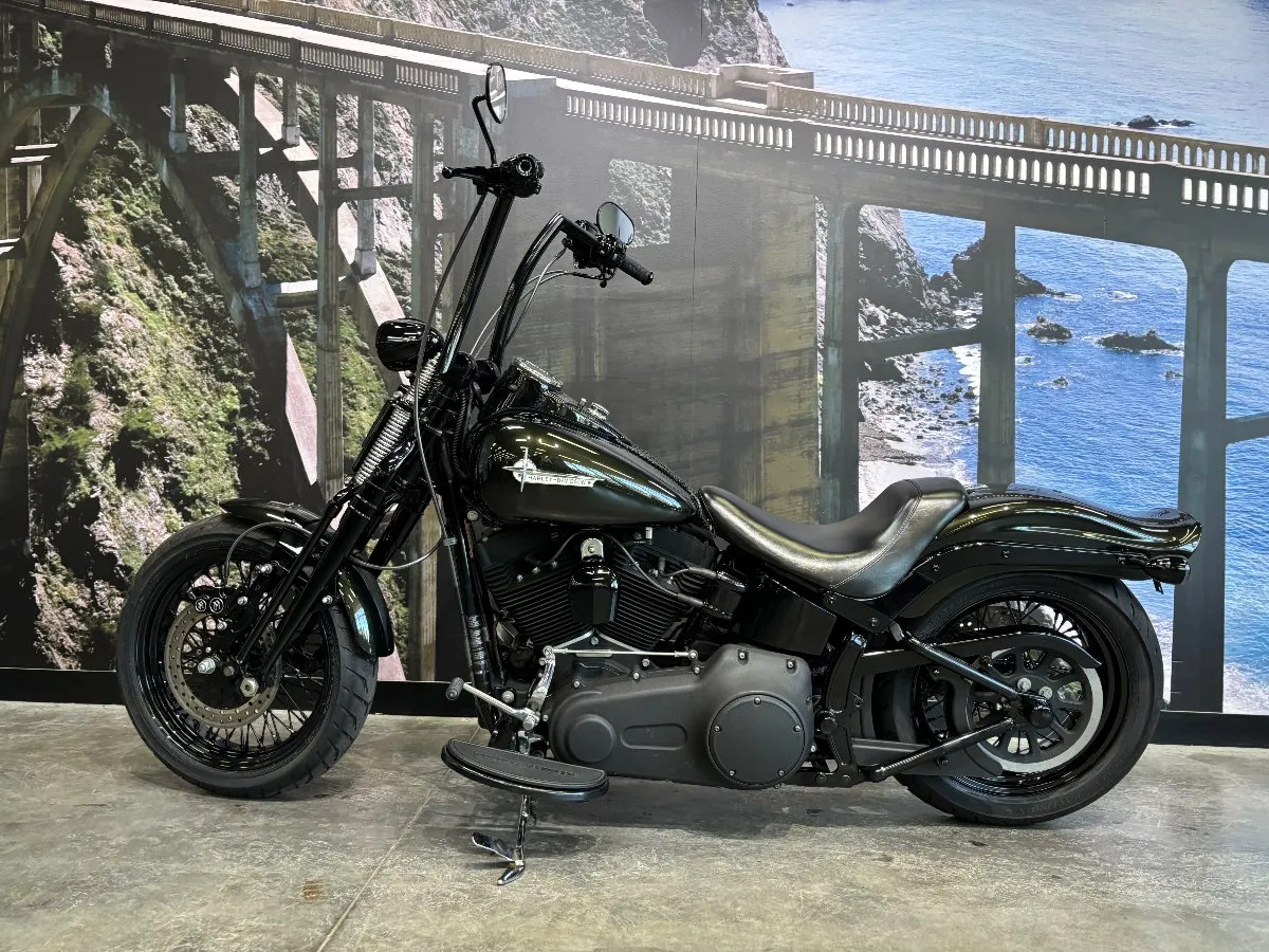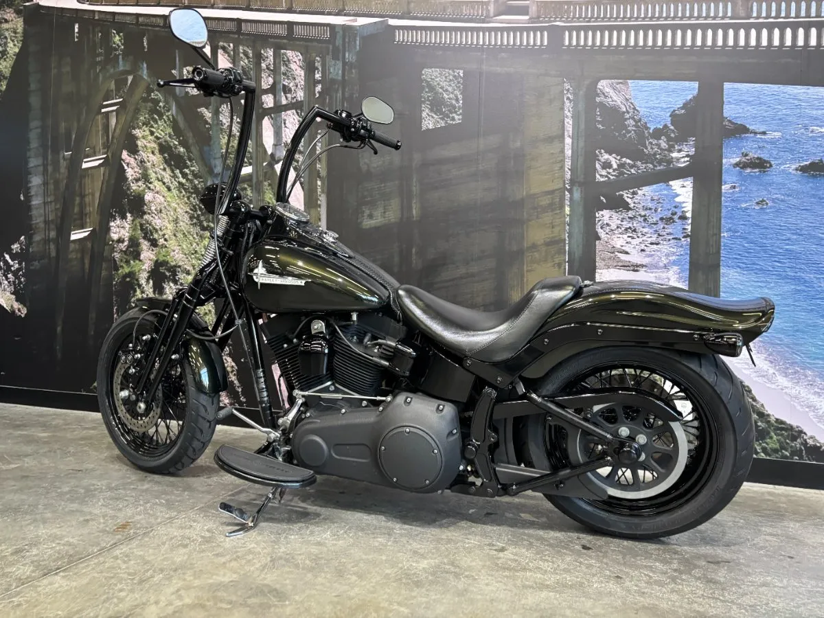 2009 HARLEY-DAVIDSON 1600CC FLSTSB SOFTAIL CROSS BONES FINISHED IN MIDNIGHT GREEN PAINT. A 96 CUBIC INCH ENGINE COMPLIMENTED BY A SET OF BLACK VANCE & HINES BIG SHOTS STAGGERED PIPES, THIS BIKE SOUNDS AWEOSME!! WITH AN OLD SCHOOL LOOK INCLUDING A SPRINGER FORK SET UP, BLACK SPOKED WHEELS & FUEL TANK NAMEPLATE THIS IS THE EPITOME OF COOL!! GET READY TO CRUISE ON THIS WEAPON WITH A SET OF 16 INCH APES HANGERS, WHAT A WICKED RIDE!!