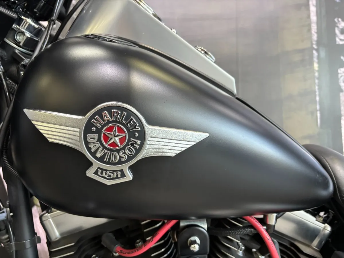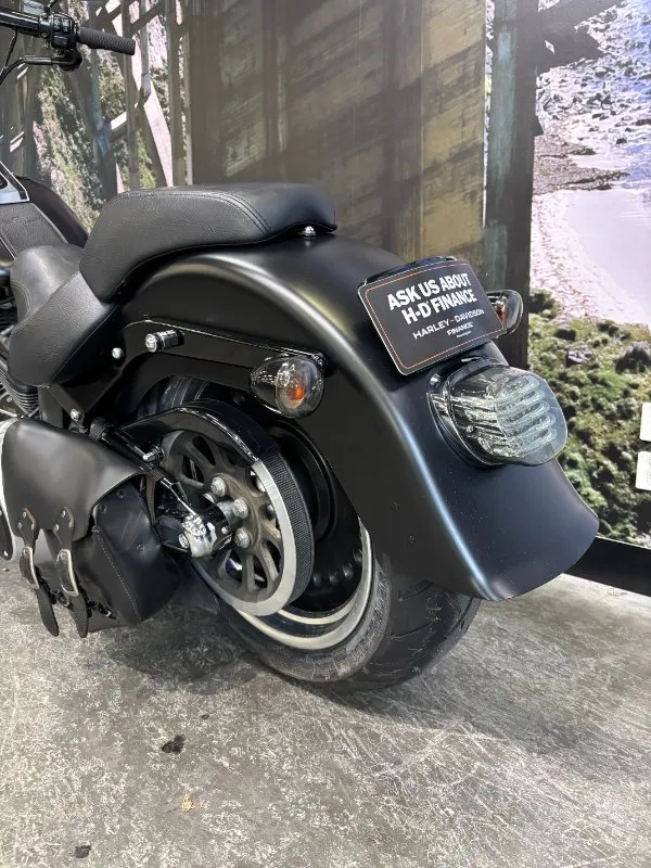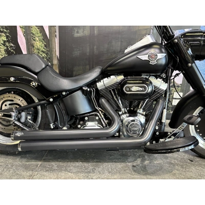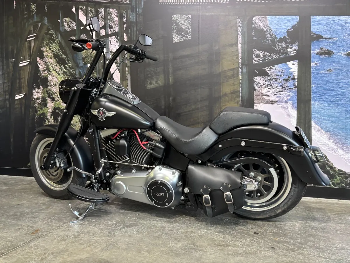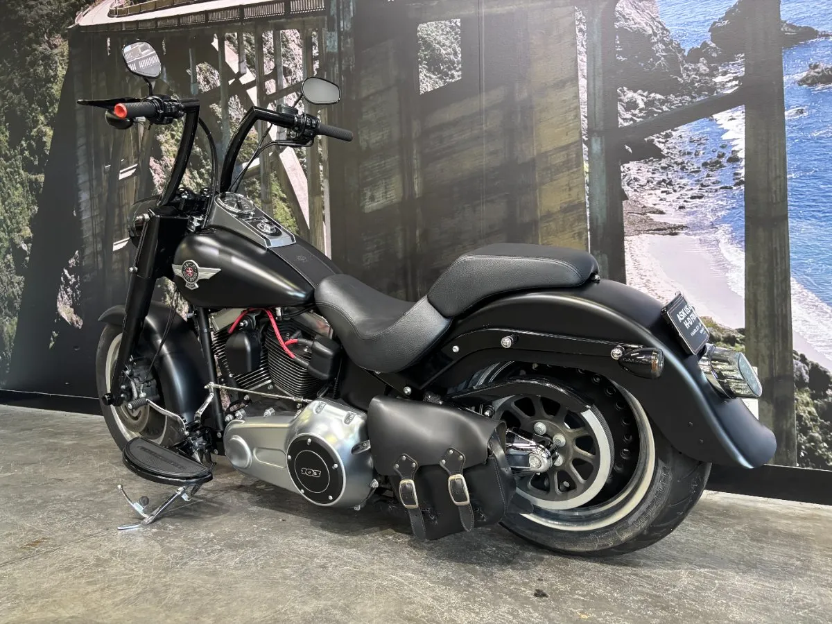 2013 HARLEY-DAVIDSON 1700CC FLSTFB FAT BOY LO FINISHED IN HARLEY-DAVIDSON DENIM BLACK PAINT & ALLOY TRIM, WHAT AN INCREDIBLE COMBINATION!! THE 103 ENGINE IS COMPLIMENTED WITH A SET OF VANCE & HINES BLACK BIG SHOTS STAGGERED PIPES & SCREAMIN EAGLE AIR INTAKE, THIS BLACK BEAUTY SOUNDS CRAZY!! 14 INCH BURLEIGH BARS, LED HEADLIGHT, BLACKED OUT FORKS & CONTROLS ALONG WITH A LAY DOWN PLATE ON THE REAR GIVES THIS FAT BOY LO LOOKS UNREAL!! THIS BAD BOY ALSO COMES WITH REAR AIR RIDE, GET READY TO TURN HEADS WITH THIS AWESOME FAT BOY LO!!