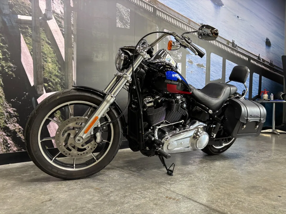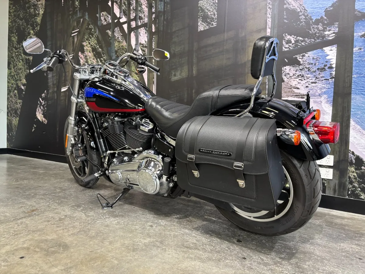 2019 HARLEY-DAVIDSON 1700CC FXLR LOW RIDER FINISHED IN VIVID BLACK FACTORY PAINT WITH 70'S INSPIRED GRAPHICS ON THE TANK. AUSSIE DELIVERED BIKE IN GREAT CONDITION, 107 CUBIC ENGINE PERFORMS SO NICELY WITH THE SCREAMIN' EAGLE AIR INTAKE. QUICK RELEASE SISSY BAR FOR RIDING 2 UP & GENUINE HARLEY-DAVIDSON LEATHER SADDLE BAGS. ONLY 5,777 KMS ON THIS LOW RIDER, THIS BIKE IS PRICED TO SELL QUICK!!