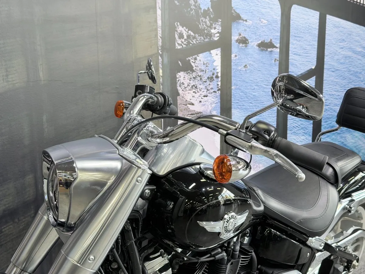2018 HARLEY-DAVIDSON 1800CC FLFBS FAT BOY FINISHED IN FACTORY VIVID BLACK PAINT WITH CHROME & ALLOY TRIM, SUCH A CLASSIC COMBINATION! THIS 114 ENGINE SOUNDS AWESOME WITH CHROME VANCE & HINES BIG RADIUS EXHAUST!!! ALSO COMES WITH A QUICK RELEASE SISSY BAR FOR YOUR PILLION PASSENGER. ONLY 3,100KMS ON THIS BAD BOY, THIS FAT BOY WILL SELL QUICK!!