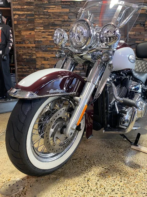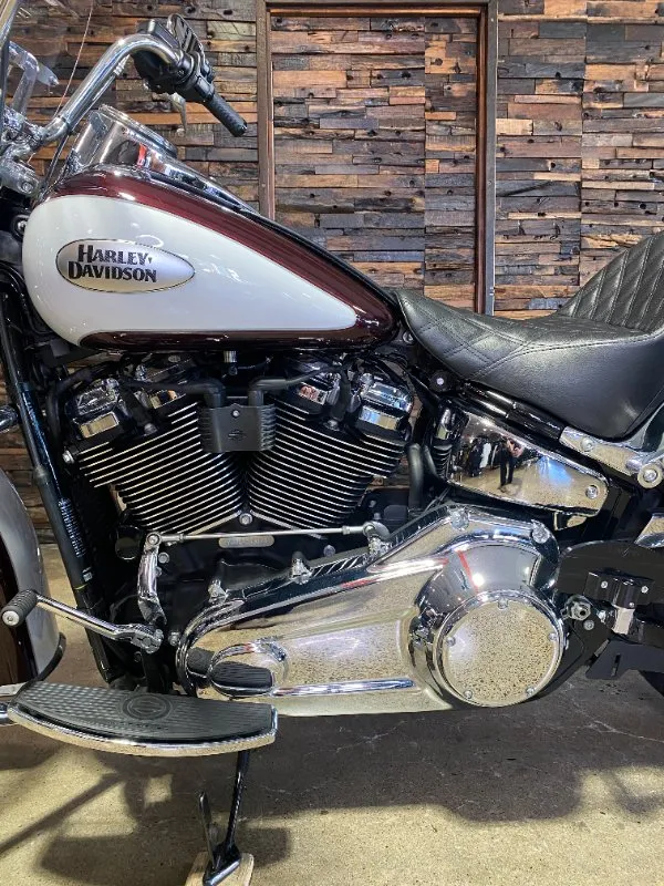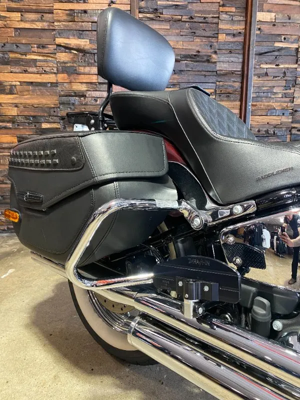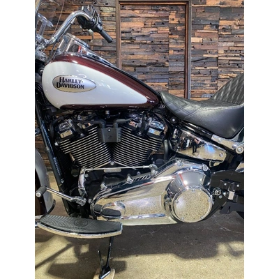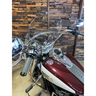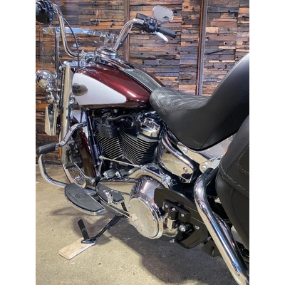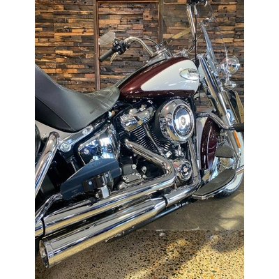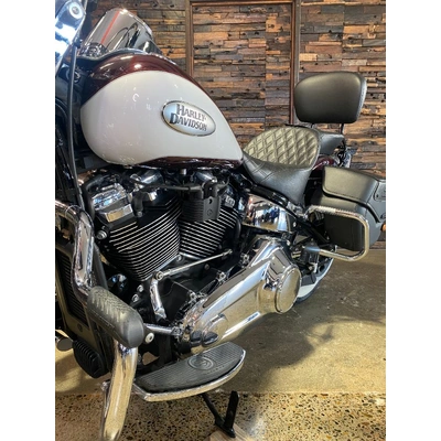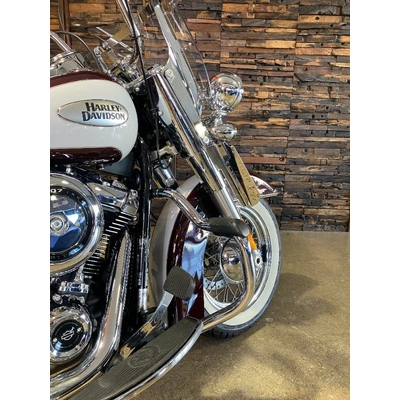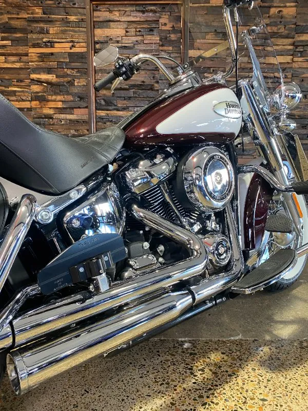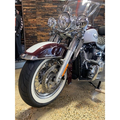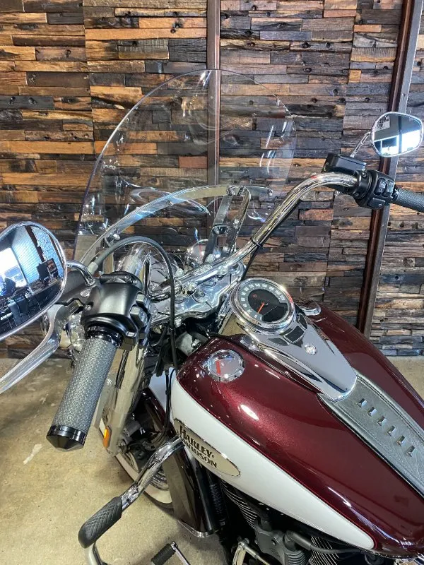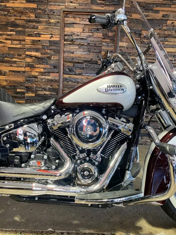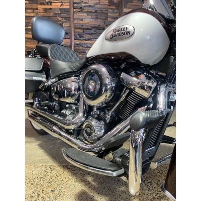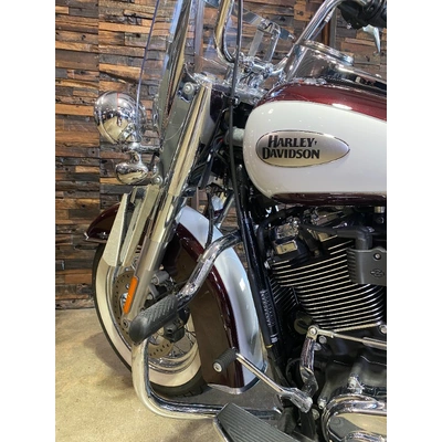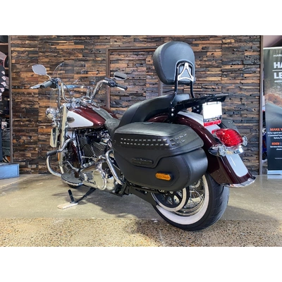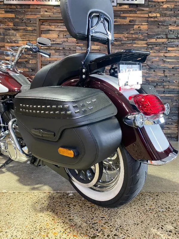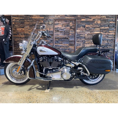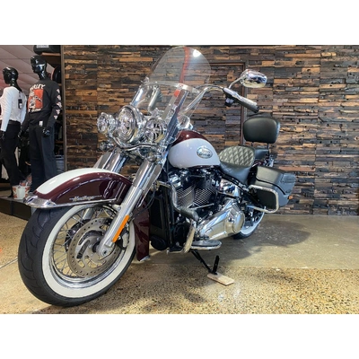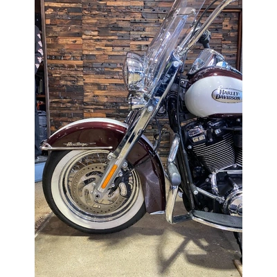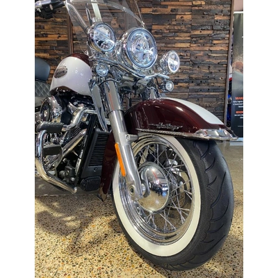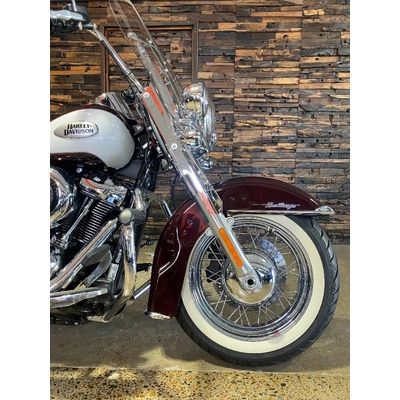 Turn heads and ride in timeless Harley style with this beautifully presented Heritage Classic. Finished in the stunning two-tone Midnight Crimson and Stone Wash White with gleaming chrome trim, this bike blends old-school nostalgia with modern performance