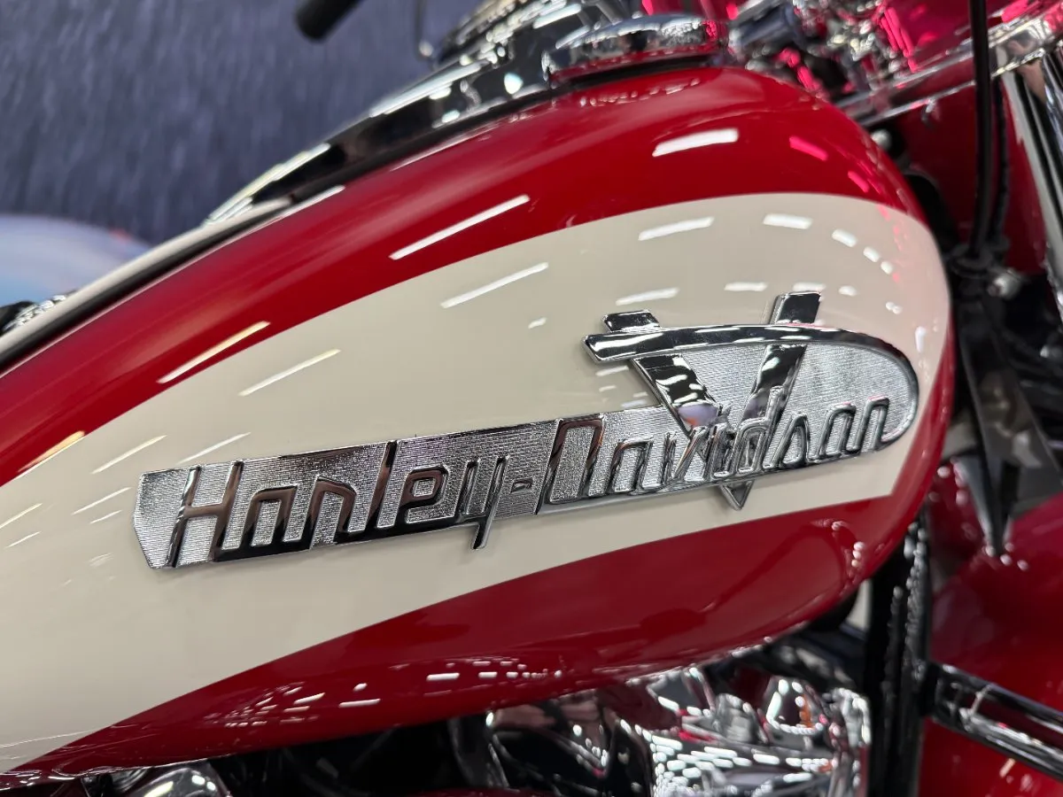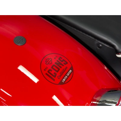 PART OF THE ICONS COLLECTION, THE FORTH ADDITION TO THE ICON RANGE IS INDIVIDUALLY NUMBERED, ONE OF JUST 1750 WORLDWIDE AND IS A THROWBACK TO THE PANHEAD ERA. CELEBRATING THE 1949 INTRODUCTION OF THE HYDRA-GLIDE FRONT END AND THE 1956 FLH, WHICH FEATURED A RED BASE COLOUR WITH A WHITE STRIPE, KNOWN AS THE 'SLASH' TWO-TONE COLOUR SCHEME.