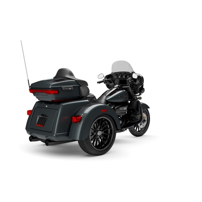 Tri Glide Ultra has a powerful, modern stance, while black finishes on the wheels and powertrain add an aggressive edge.