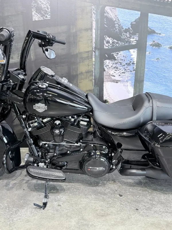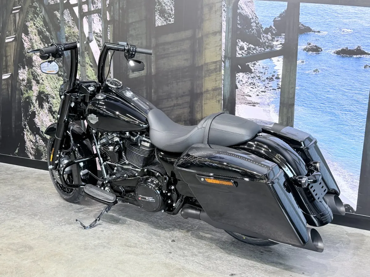 2025 HARLEY-DAVIDSON 1900CC FLHRXS ROAD KING SPECIAL FINISHED IN FACTORY VIVID BLACK PAINT & BLACK TRIM, THIS ROAD KING LOOKS MEAN!! WE HAVE GIVEN THIS 2025 MODEL A MAKEOVER WITH SOME AWESOME UPGRADES. WITH A SCREAMIN' EAGLE 122 CUBIC INCH STAGE 3 ENGINE WITH BIG BORE KIT, THIS ROAD KING PUMPS OUT SOME SERIOUS POWER!! WITH A SET OF KHROME WERKS HEADERS AND SLASH CUT VANCE & HINES MUFFLERS YOU WILL BE HEARD BEFORE YOU ARE SEEN. 14 INCH BLACK BURLEIGH HIGHBALL HANDLEBARS AND A HOG LIGHT LED HEADLIGHT ON THE FRONT, THESE UPGRADES ARE INSANE!!! COME IN AND CHECK OUT THIS BUILD.