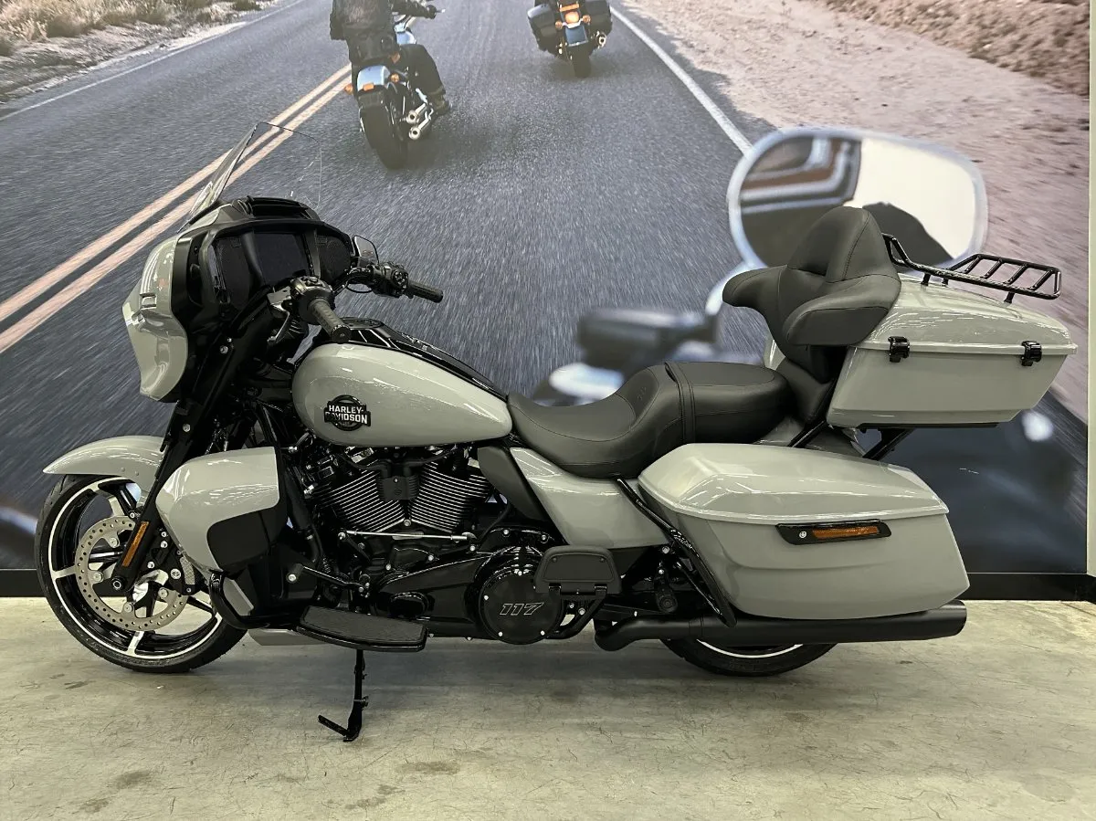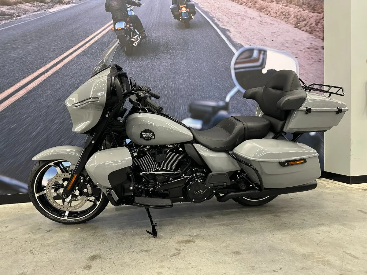 2025 HARLEY-DAVIDSON STREET GLIDE ULTRA 117 FINISHED IN BILLIARD GRAY ON BLACK TRIM.