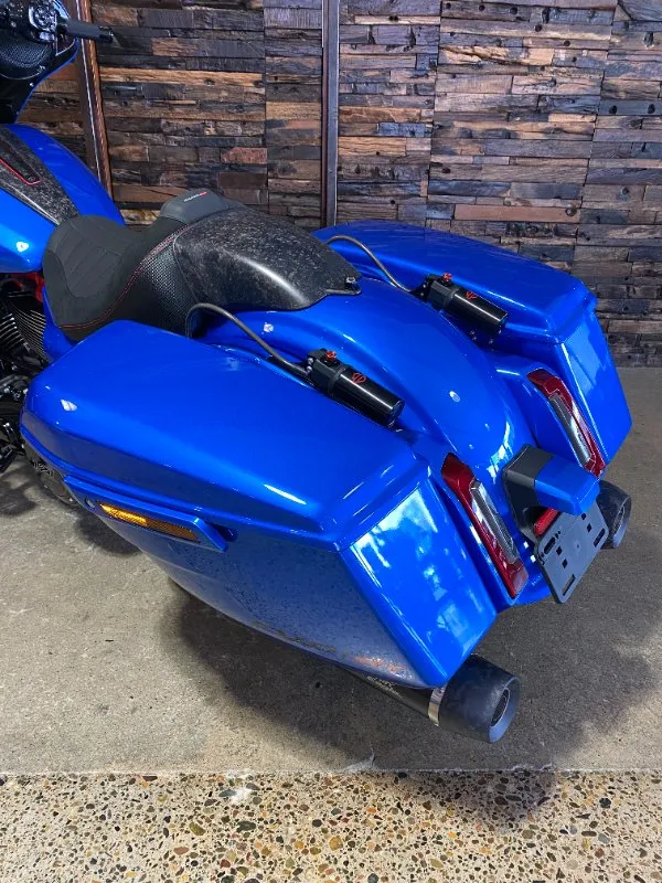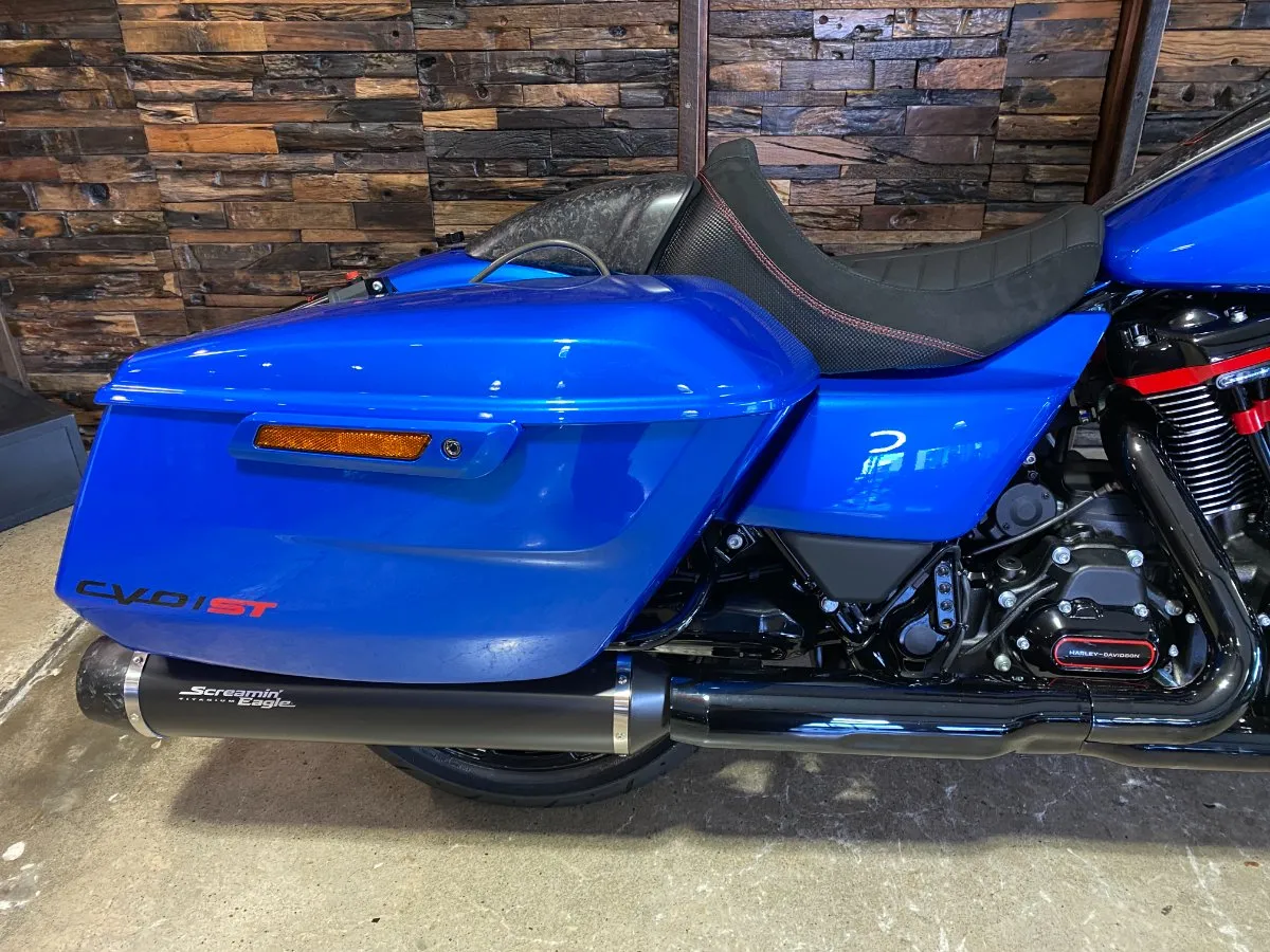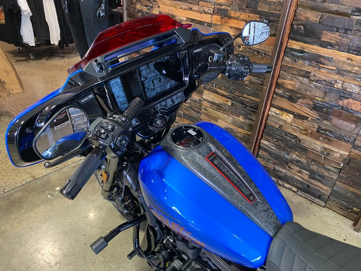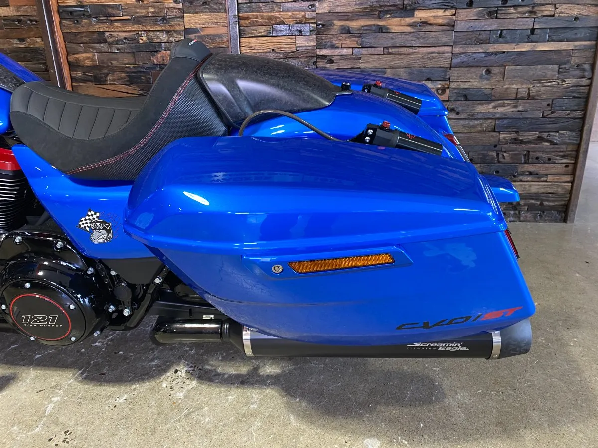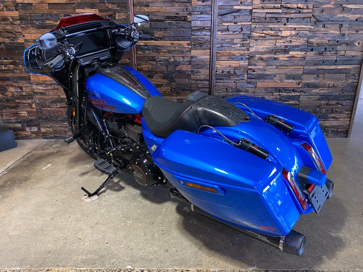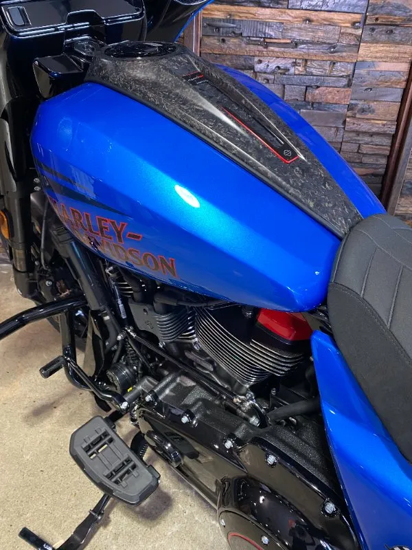 Inspired by our MotoAmerica King of the Baggers race bikes, the CVO Road Glide ST features lightweight carbon-fiber parts, competition-inspired electronic assists, and the Milwaukee-Eight 121 High Output V-twin engine, bringing track-ready performance and engineering to the streets.