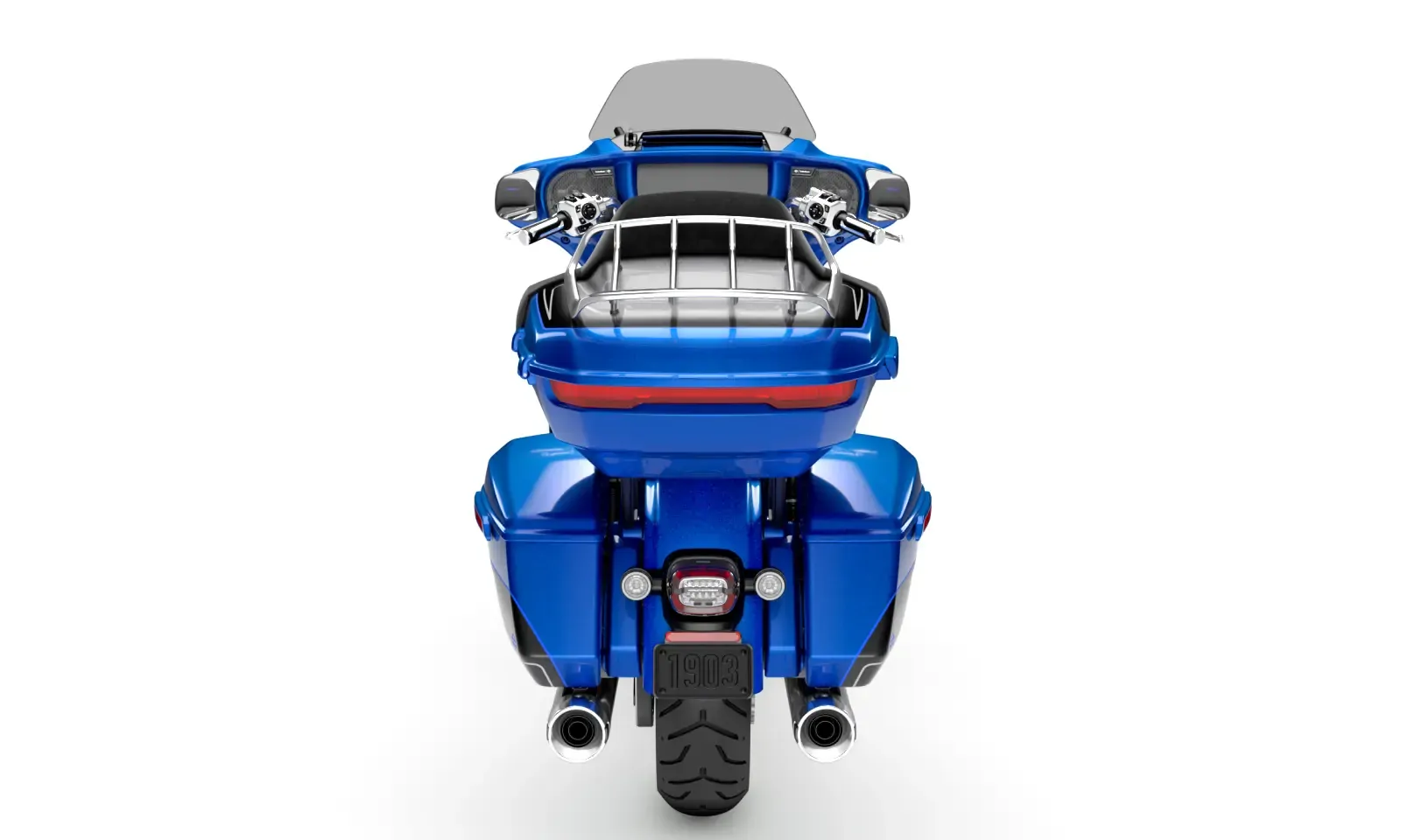 The new Grand Tour-Pak brings refined function to luxury touring. Flush lighting, integrated speaker pods, and a reimagined rack design create a seamless visual flow, while electronic locking saddlebags, pull-out liners, and improved storage access make every mile of travel that much easier.