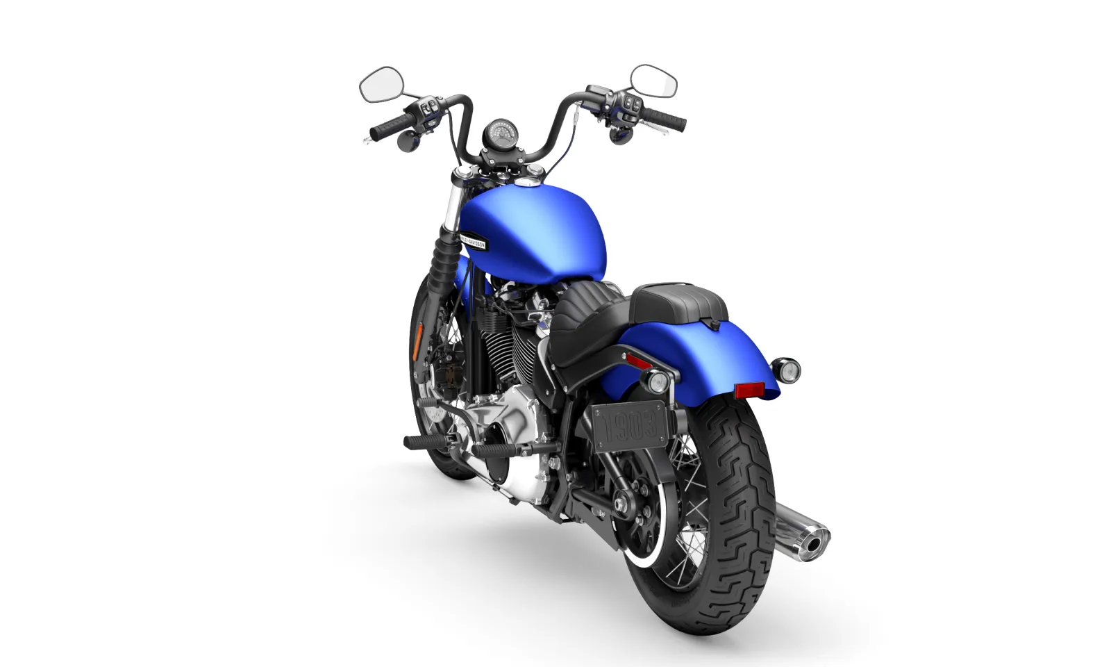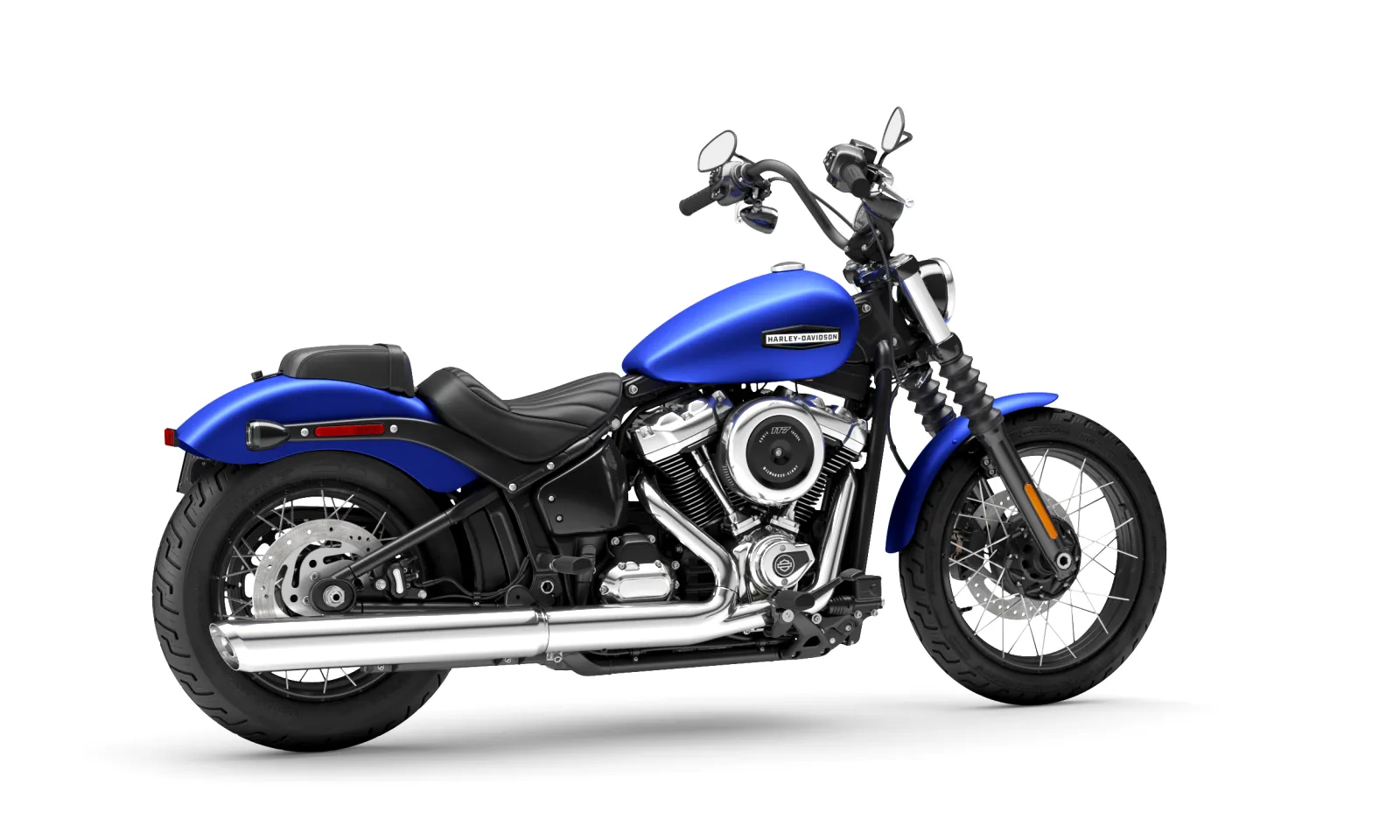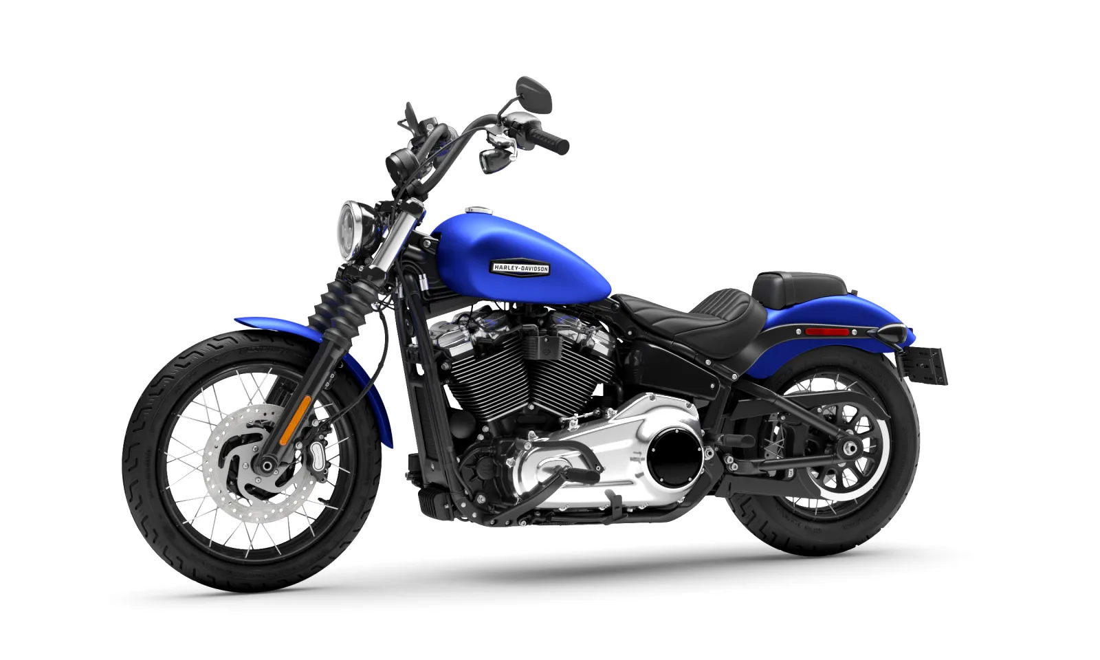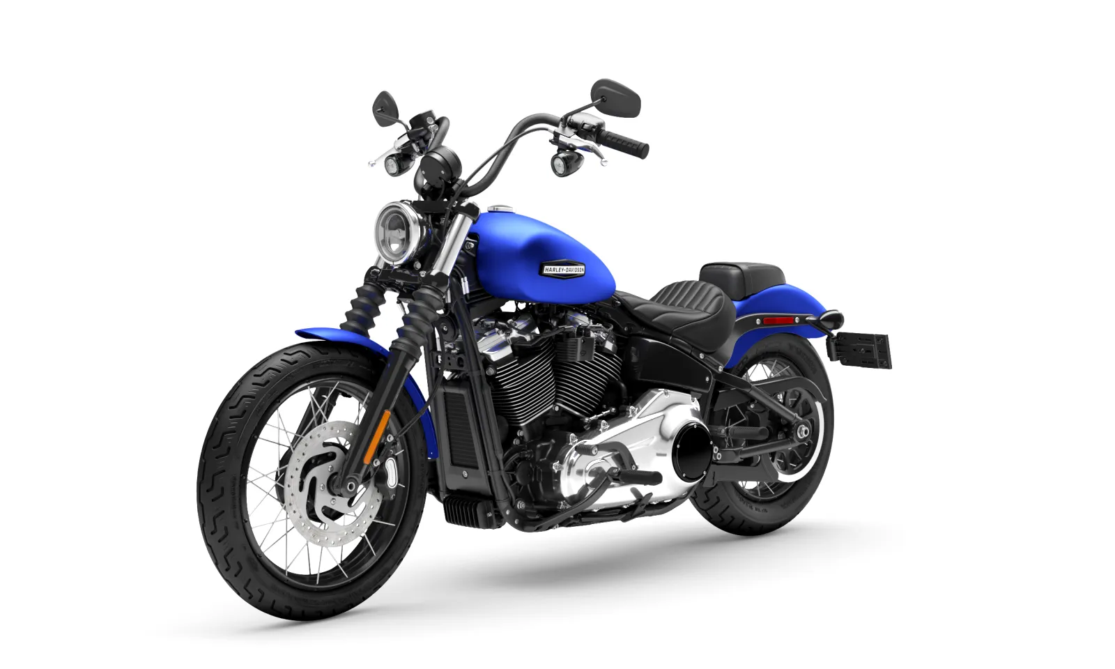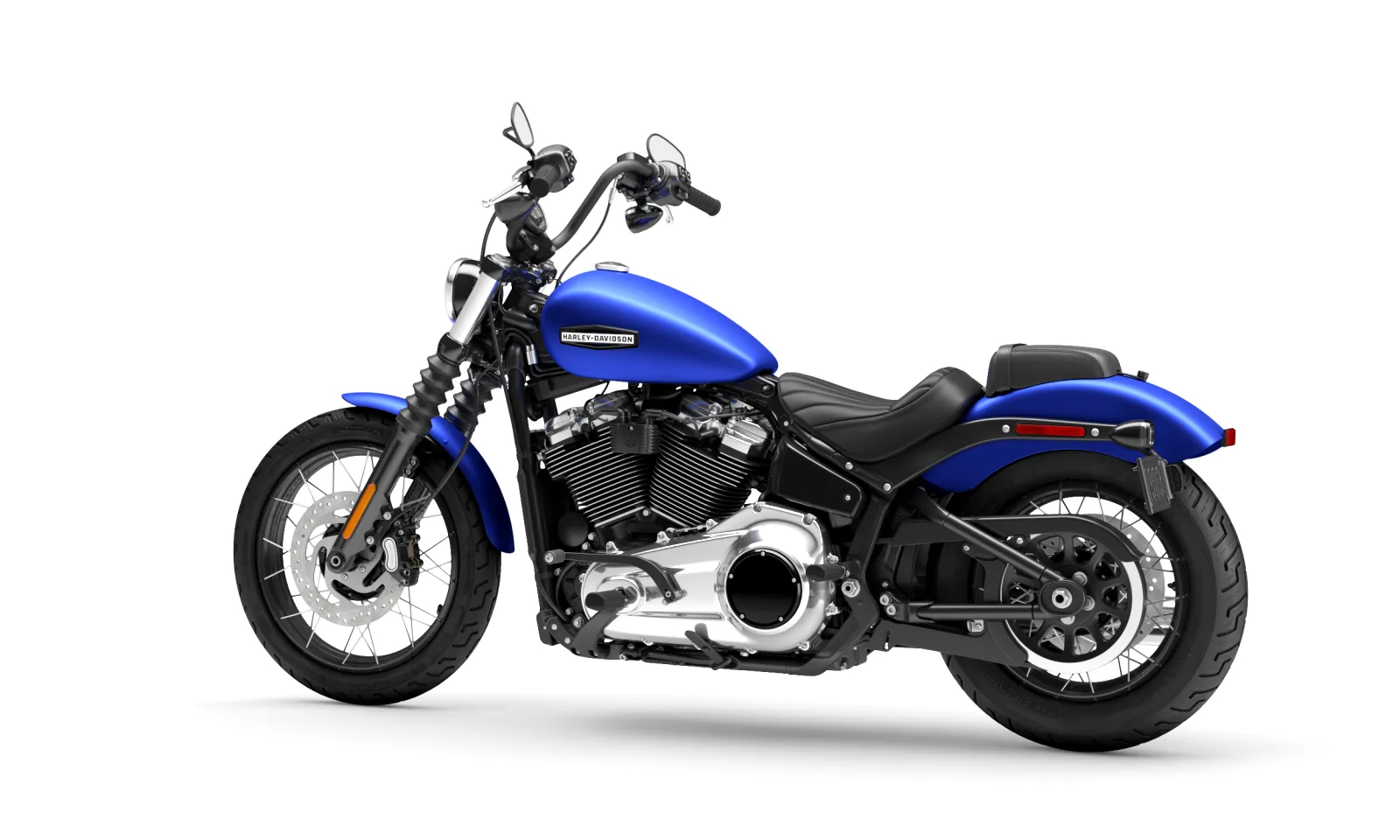 With mini ape-hanger bars, a slim 13.2 l gas tank, and a short, bobbed rear fender, the Street Bob has custom bobber style straight from the factory with none of the custom bobber struggle.
