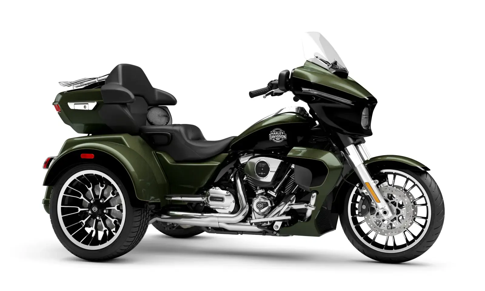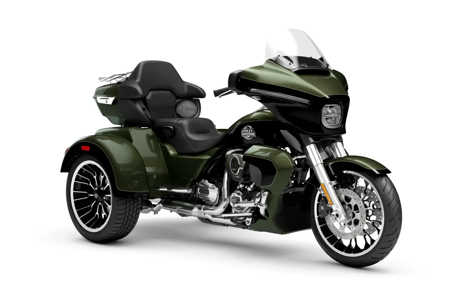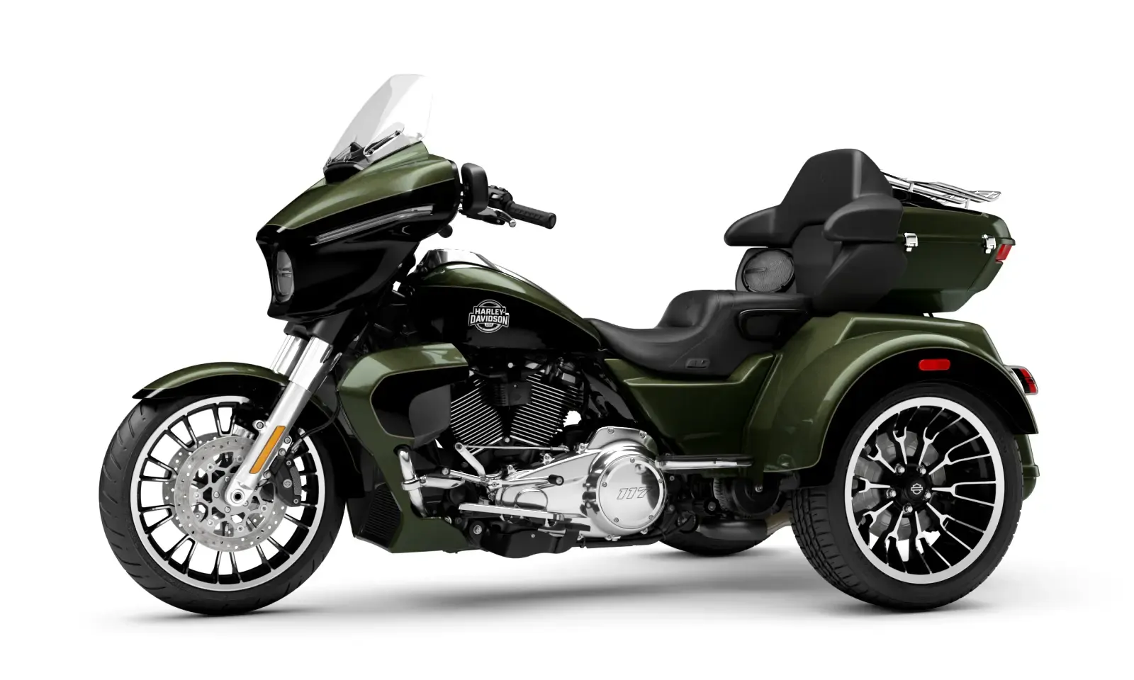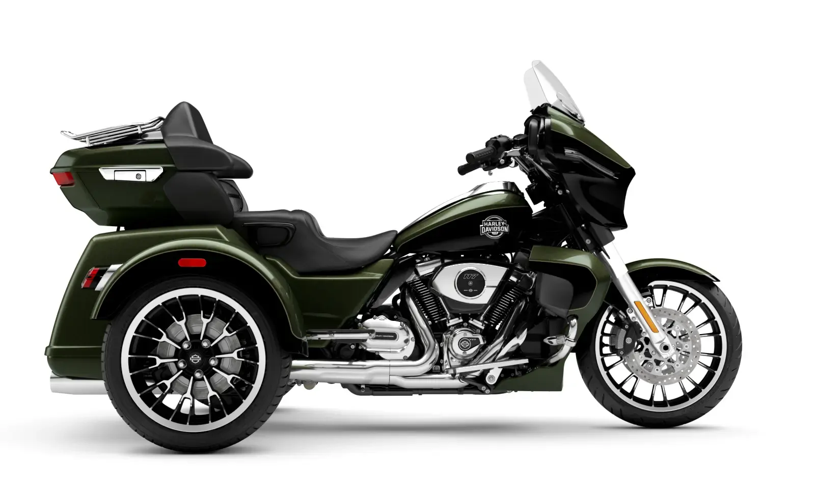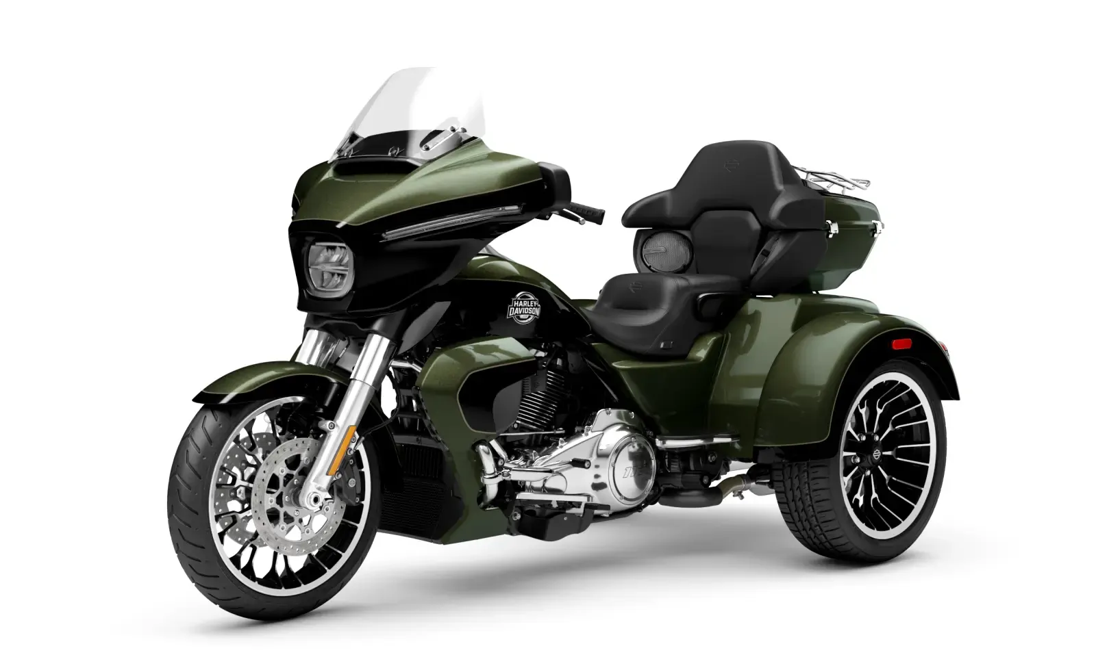 Year 2026 Condition New Colour Olive Steel Metallic/Vivid Black Engine 1,923cc Body Type Trike Stock # FLHLT-OSMVBC-26