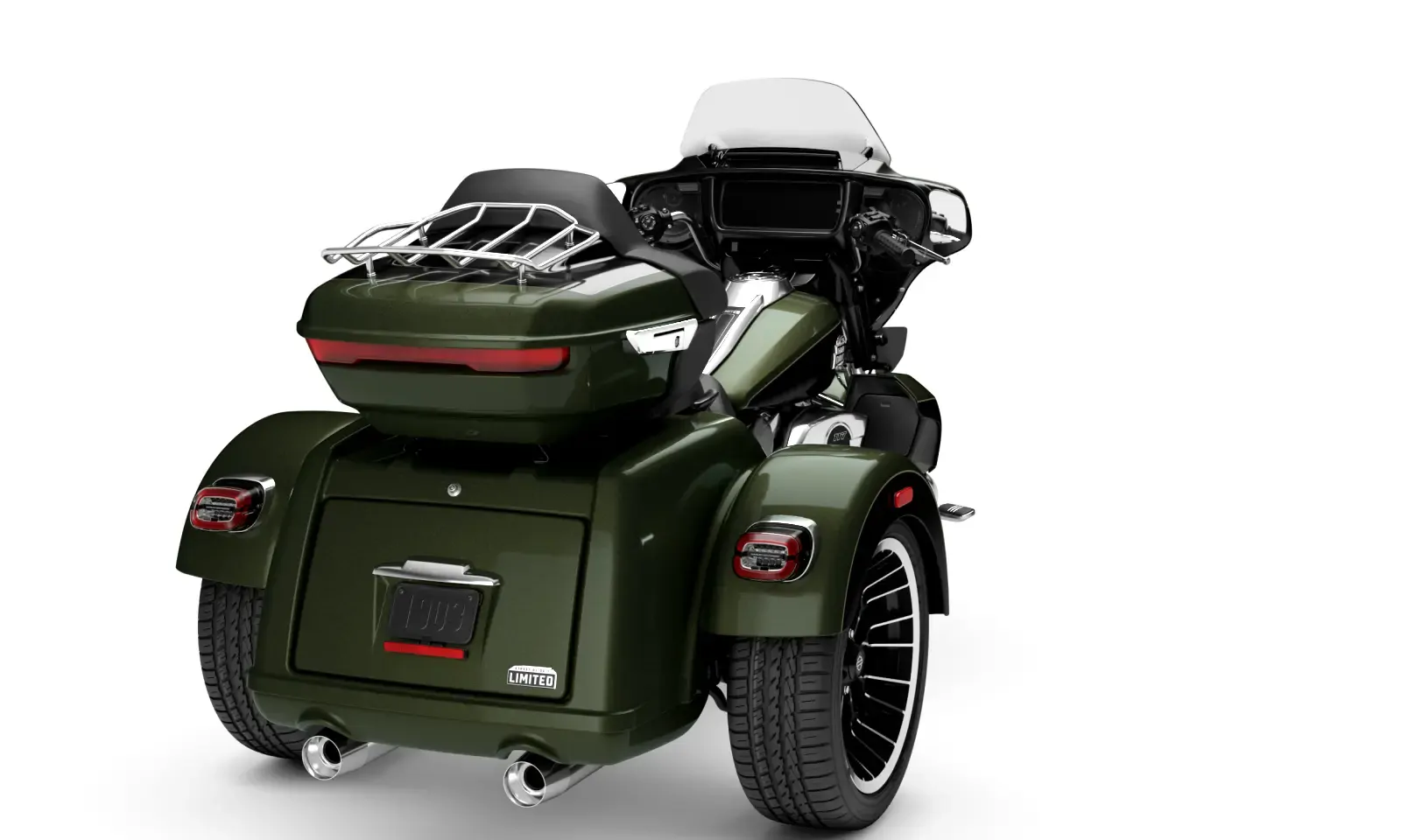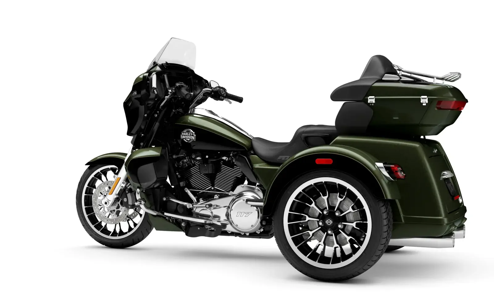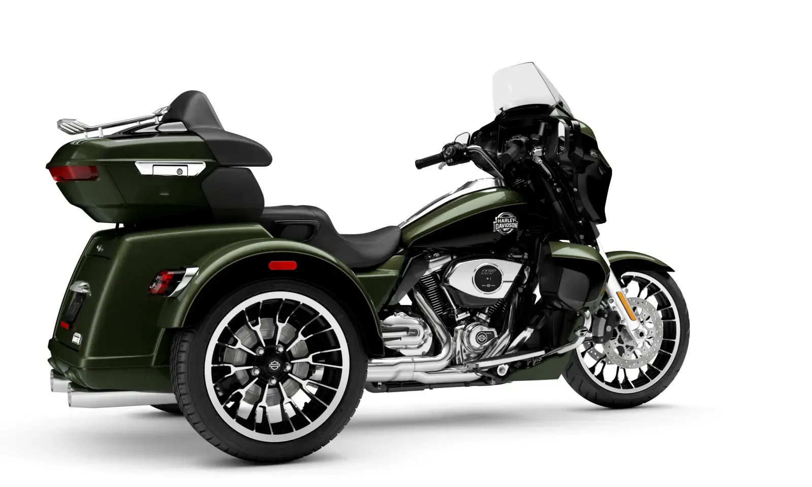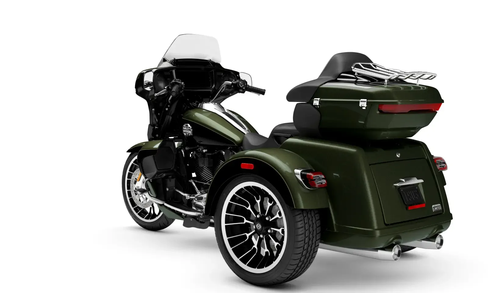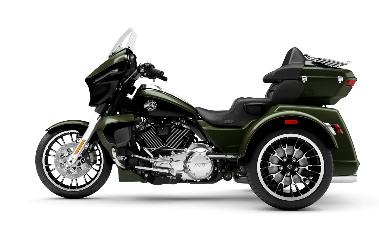 Year 2026 Condition New Colour Olive Steel Metallic/Vivid Black Engine 1,923cc Body Type Trike Stock # FLHLT-OSMVBC-26