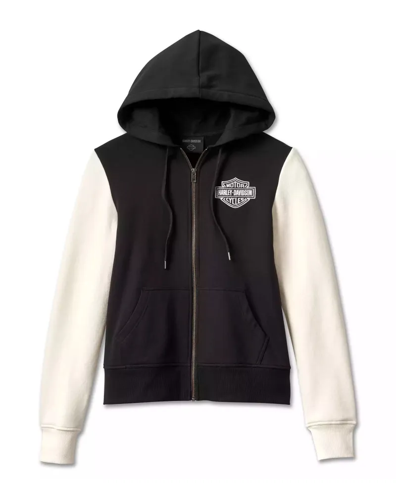 • Design details: Contrast sleeves. Jersey-lined hood with drawstring. Ribbed knit cuffs and hem.