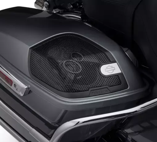 - Speakers mounted in saddlebag lids surround rider and passenger with sound and increase the over-all volume of the audio system