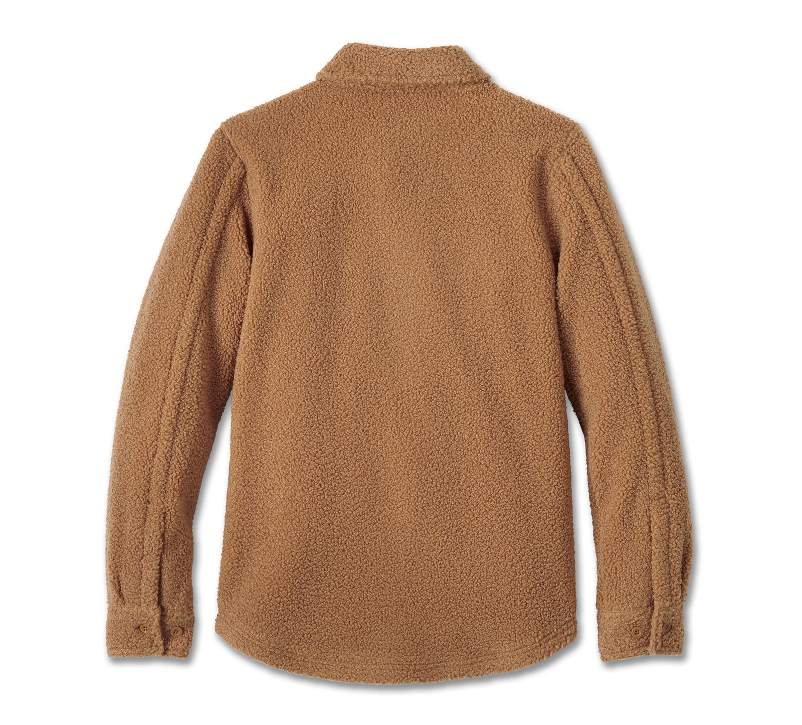 Cozy winter style gets an enthusiast upgrade on our Limited-Edition Harley-Davidson® Sherpa Shirt Jacket. Made from heavyweight polyester curly Sherpa and lined for stay-warm comfort. This women’s outerwear features chest and hand-warmer pockets, plus a hidden snap-down collar that stays put under riding gear. Minimally branded with a hit of embroidery on front. Order now while supplies last.