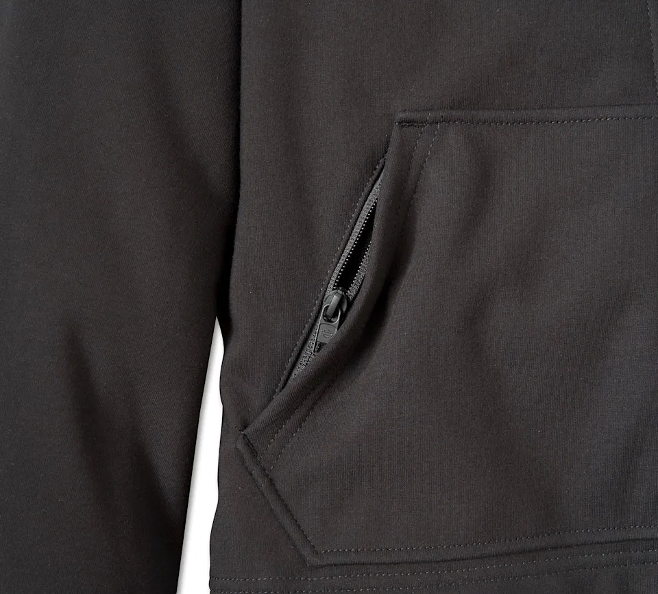 Hoodie style meets functional riding protection in our latest Deflector 2.0 Hooded Riding Fleece. This upgraded style is still abrasion-resistant, but now includes superior impact protection with our D3O® Ghost armor at the shoulders and elbows. Weve also extended the venting area to welcome more airflow, and added a secure zippered pocket to the right kangaroo pocket. Made from rugged polyester and cotton polar fleece with a breathable mesh lining, this womens riding jacket is engineered to be windproof and features an adjustable hood. Its finished with our most iconic logo on back for a classic Harley-Davidson® look. See all of its specs below, then claim yours while supplies last