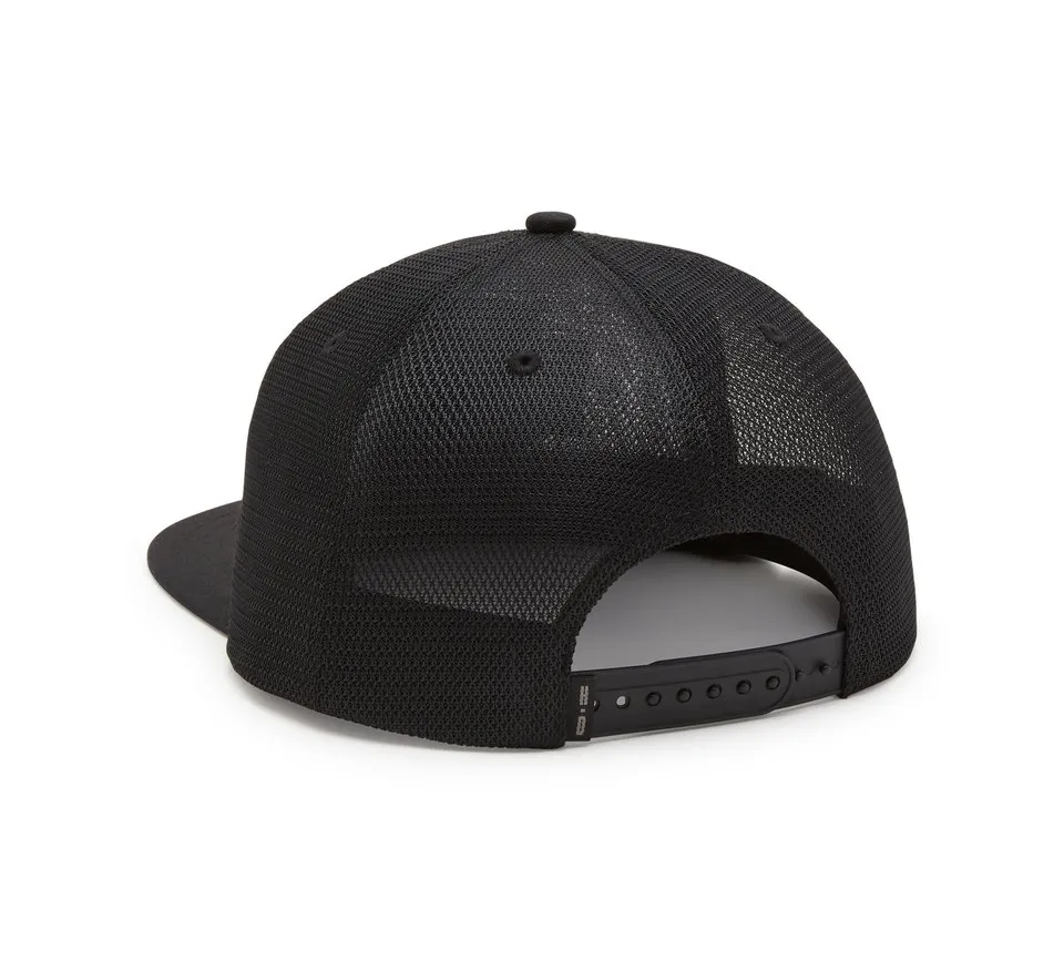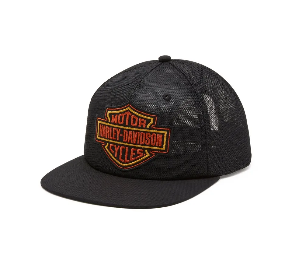 We’ve dialed moto style back a few decades with our Bar & Shield Switchback Mesh Crown Trucker Cap. It’s made for longwearing comfort and breathability with an all-mesh crown, plus features an adjustable snap back for your ideal fit. This men’s hat is finished with our most notable logo in our seasonal color palate for a Harley look inspired by the 1980s.