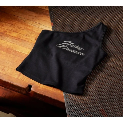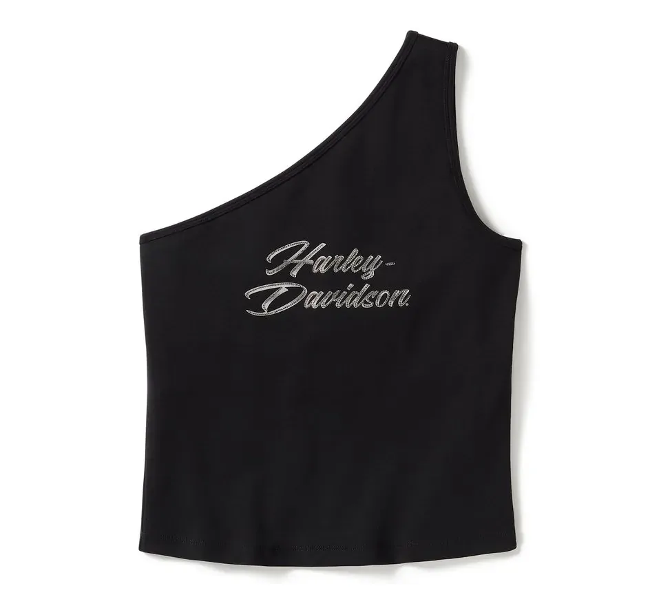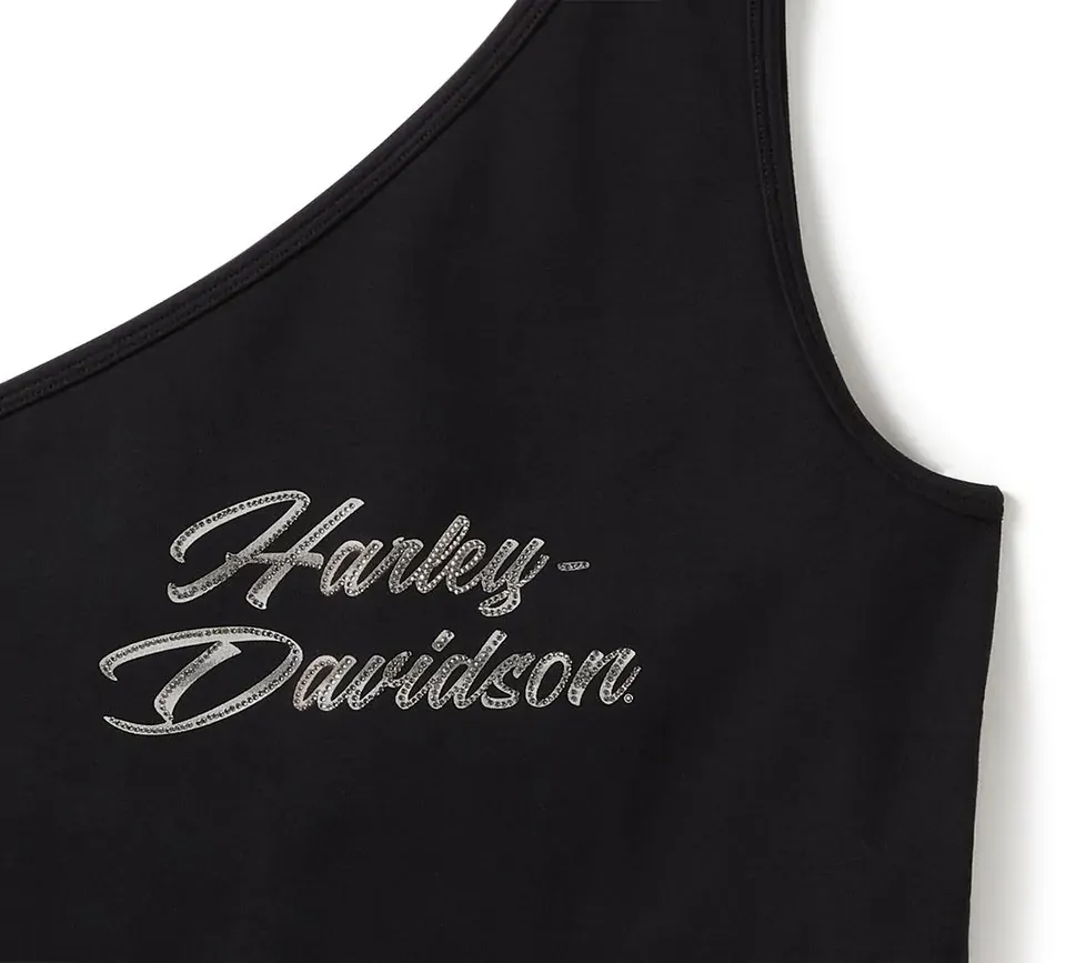 Harley-Davidson Womens Essential Bling One Shoulder Top - Harley Black - XL